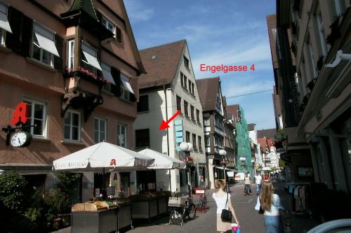 im gleichen Gebäude wie Pro-Optik links in die Engelgasse